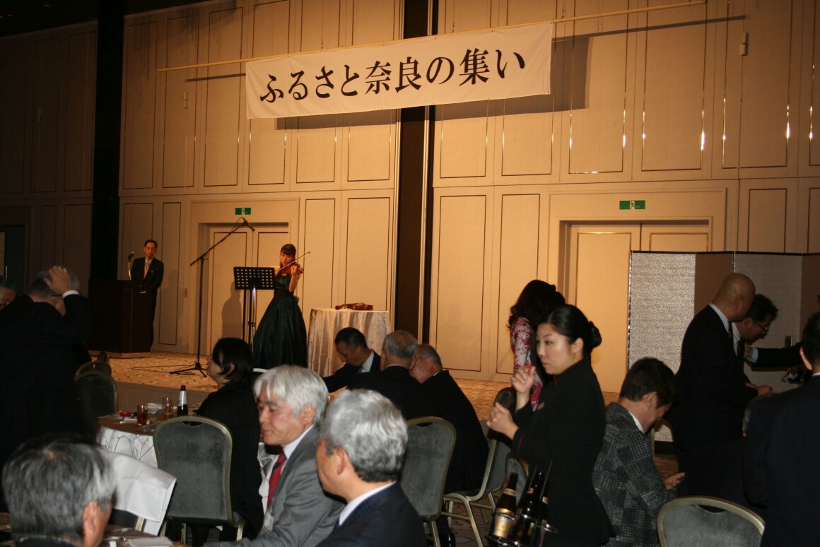 冒頭、荒井正吾知事はリニア中央新幹線や平城宮跡の整備、来年迎える興福寺中金堂の落慶行事など県内の動きを報告。「奈良の食材をふんだんに使った料理を食べながら交流を深めてほしい」とあいさつした。続いて柗本俊洋東京奈良県人会会長は「参加者が昨年より大幅に増えてうれしい。多くの仲間を作ってもらい有意義な時間にしてほしい」と笑顔で呼びかけた。